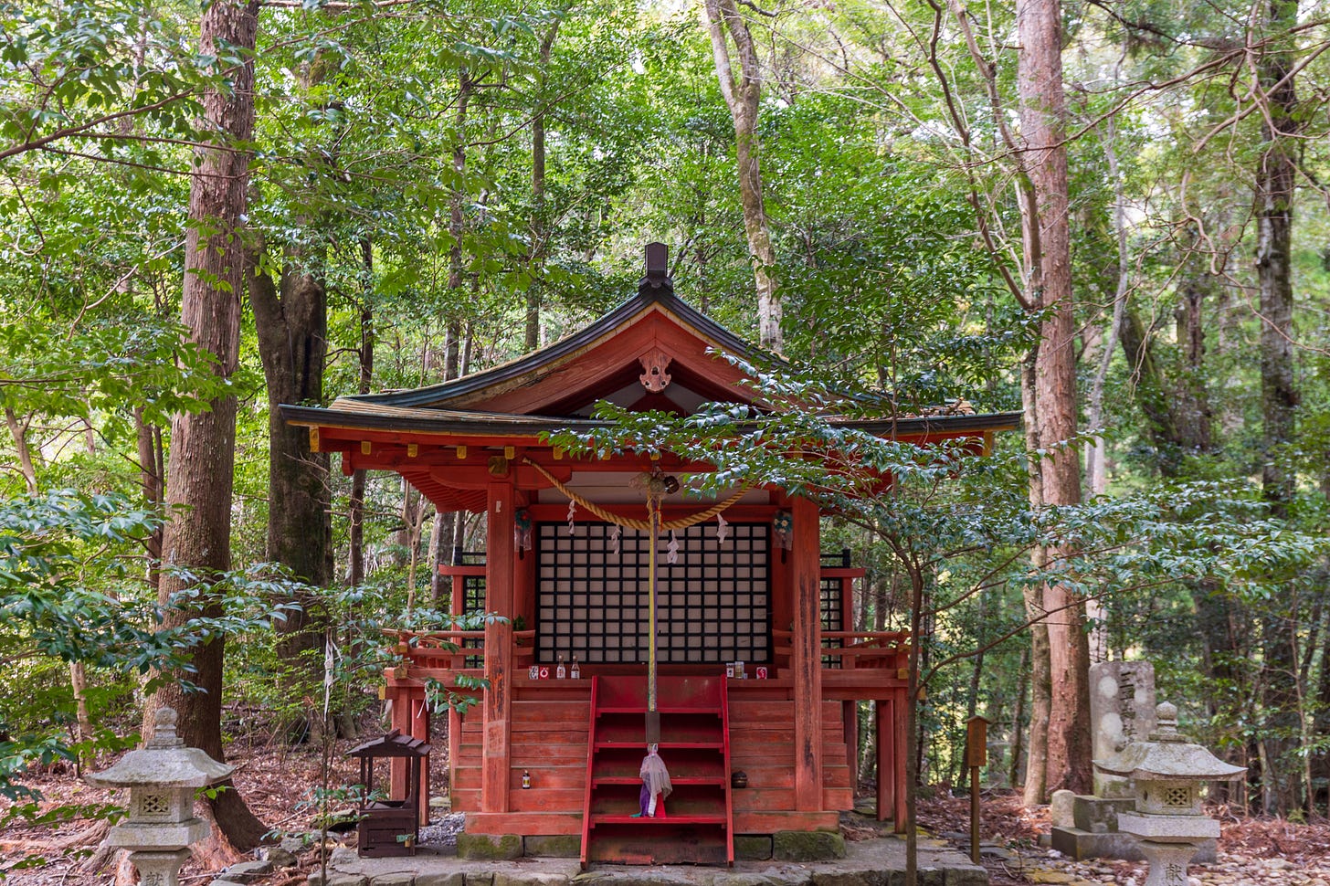 Once you start to notice it, you see it everywhere: small shrines tucked into the forest, a Jizō statue - the protector of travelers and children - by the side of the path, or an unassuming torii gate that comes out of nowhere, just to lead the way to the sacred grounds that you did not know were there.