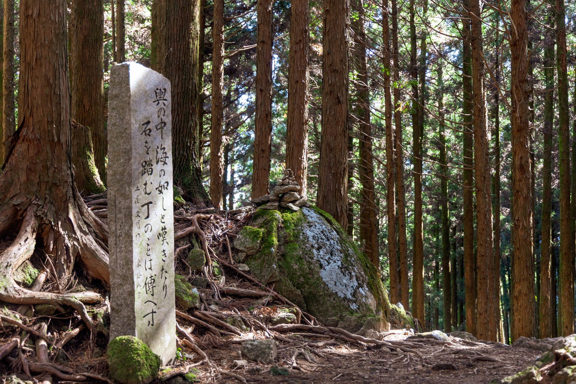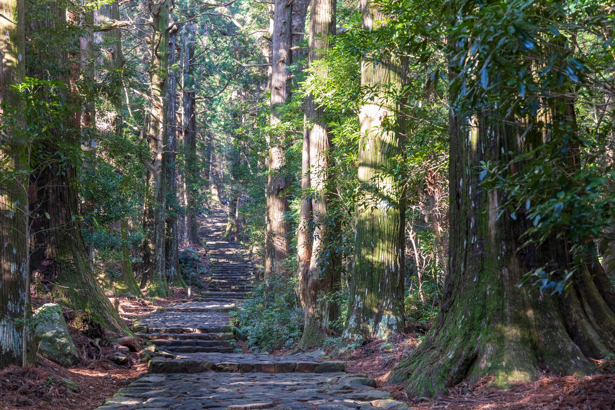 This first section, a 600-meter-long cobblestone, moss-covered staircase guarded by centuries-old cedar trees, is one of the scenic highlights of the trail and an attraction in its own right, drawing hundreds of visitors every day.