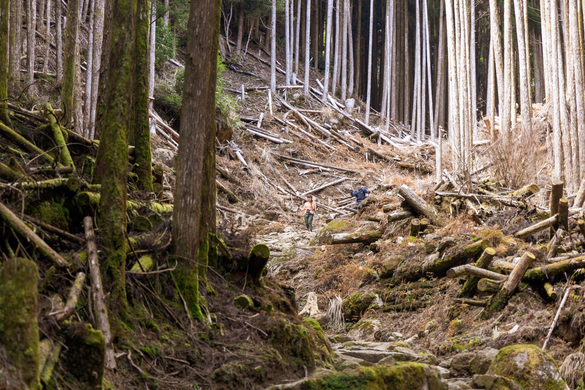 Dogiri-zaka, the most infamous or beloved section of the hike, depending on which side you start from and otherwise known as the “body-breaking slope,” involves 800 meters of elevation gain over 5 kilometers (if you begin from the Koguchi side). It is one of those segments where mossy paths and a river running alongside try their best to lure you with remarkable beauty, to distract you from the challenge they present.