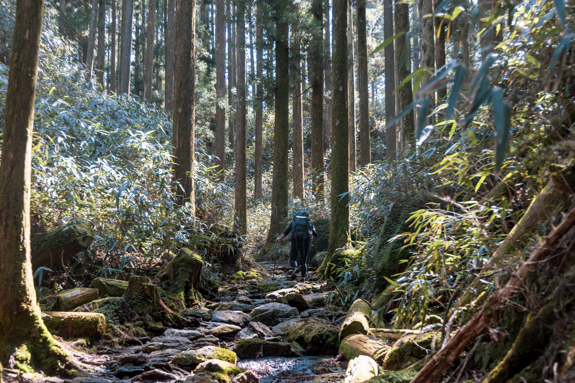 This is the one section of Nakahechi where you get the feeling of a deep-forest hike, deliciously spooky in certain light. As the sun starts gently going down, the atmosphere starts feeling a little bit eerie, not the kind that makes you feel nervous, but helps you better connect to the thousand-year-old history of the forest.