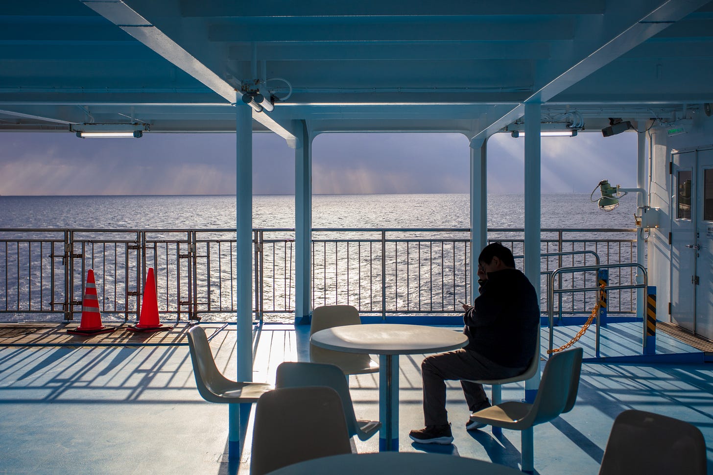 Traveling on a ferry in Japan feels like time travel, and I highly recommend trying one. The small arcade featuring various video games, the carpet floors, and the velvet-covered sofas make you feel like you are traveling in a museum. But it is a very lively one - all the facilities on the ferry are enjoyed to the fullest by the passengers. When I walked onto the ferry at 11 p.m., the vibe felt like the opening hour of a bar and/or off-main street casino (not that I have ever been to one). The ferry Taiko departs daily, and I naively thought there would be very few passengers, given the more convenient and quicker modes of travel to the islands and the season. In my shared room with eight capsules, all but one were occupied.